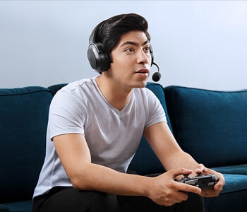 Um fone de ouvido para todos – o Headset Gamer Pro é um fone de ouvido para jogos sem fio leve e versátil, desenvolvido para uso contínuo em seu PC, console e dispositivos móveis. Apoiado por um design inteligente sem fio duplo, alterne convenientemente entre jogos de alto desempenho em casa e uso móvel contínuo nas ruas.